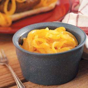 In een grote koekenpan op middelhoog vuur, kook uien in boter en olie tot ze gaar zijn.