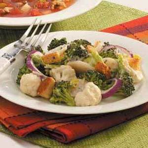 Deze kleurrijke groentemix met een zoete zelfgemaakte dressing is in een oogwenk gereed. "Ik heb de combinatie bij vele gelegenheden genoten", zegt Marian Seuferling van Louisburg, Kansas. "Ik verdubbel vaak het recept en serveer het op speciale evenementen."