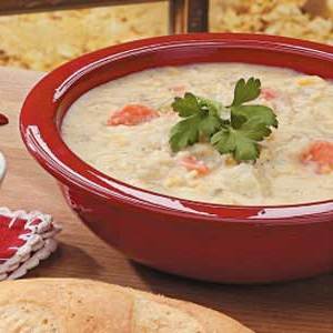 30 minCorn Chowder Receptenwater, aardappelen, wortels, selderij, ui, zout, peper, boter, meel, melk, kaas, creme maïs,magnetron maïssoep -
