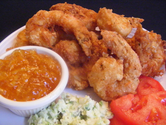 Maak en deel deze Paula Deen's Coconut Shrimp With Orange Marmalade Dipping Sauce recept van.