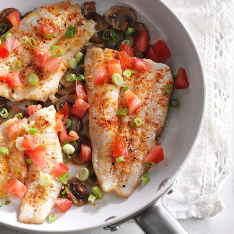 25 minTaste of Home Magazine Dinner Receptenoranje roughy-filets, Caesar saladedressing, crackers met crackers, kaas,Caesars vis -