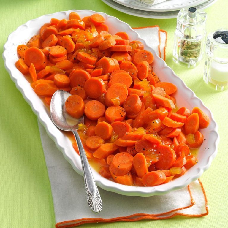 Mijn kinderen hebben geen moeite met het eten van al hun groenten als dit gerecht op tafel staat. Deze met perzik gezoete wortels zijn een geweldige metgezel voor onze paashaas. -Christine Mohn, New Providence, Pennsylvania