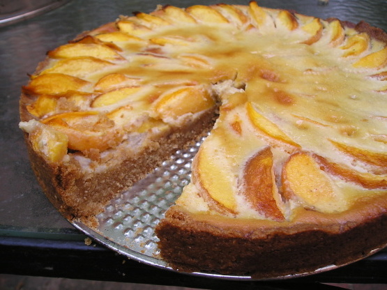 For the filling, preheat oven to 350*F., if you haven't done it already.Arrange sliced peaches in concentric circles in cooled tart shell, filling the shell.In a food processor, place cream cheese, cream, and sugar, mix until smooth.Add eggs, one at a time, mixing well after each addition.Add cinnamon, allspice, nutmeg, and rum extract and mix well.Pour over peaches and bake for about 30 minutes,or until a knife inserted in the center comes out clean.Serve warm or cold with lightly whipped cream and/or caramel sauce.Enjoy!