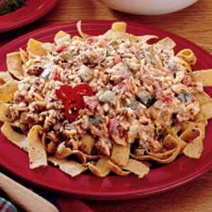 Voeg de volgende acht ingrediënten toe.Simmer, onbedekt, gedurende 10 minuten.Voeg rijst, zure room en kaas toe; kook op laag vuur tot de kaas gesmolten is, ongeveer 6-8 minuten, af en toe roeren (niet koken).