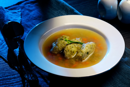 Breng de soep weer aan de kook.Ver de gevormde quenelles en laat 5 minuten sudderen.