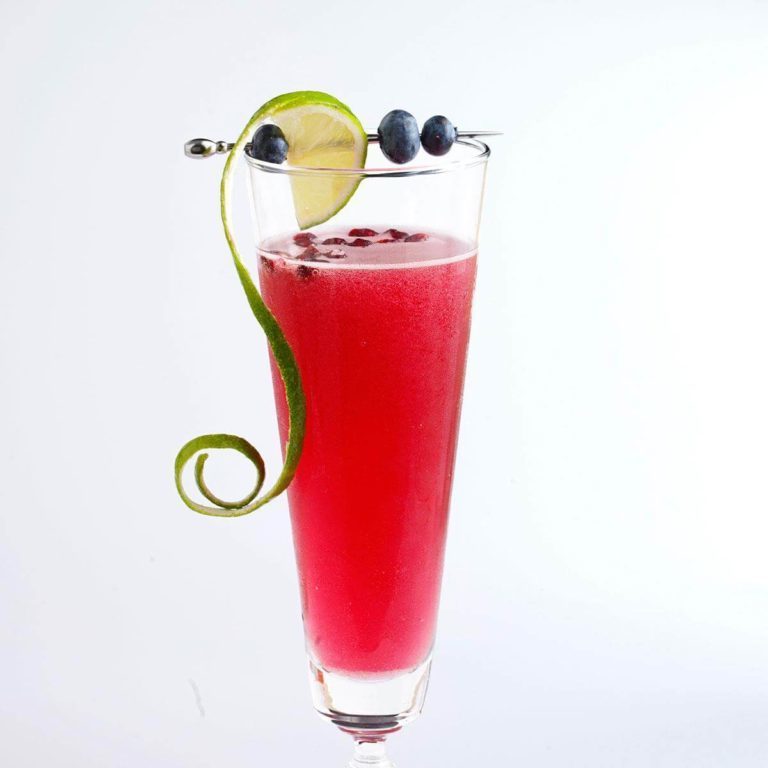 Giet granaatappel bosbes en limoensap in een Champagne-fluit; top met wijn..