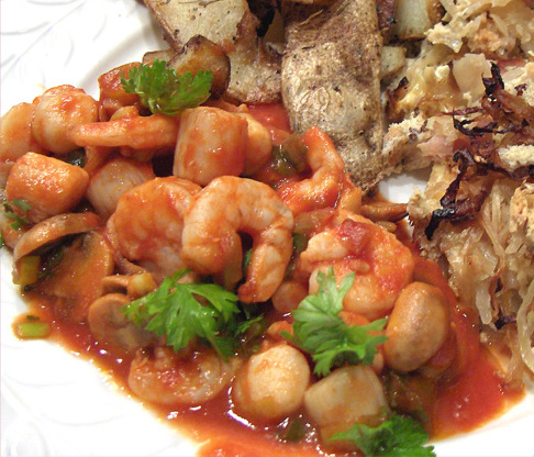 Maak en deel dit Portugese recept met garnalen en sint-jakobsschelpen.