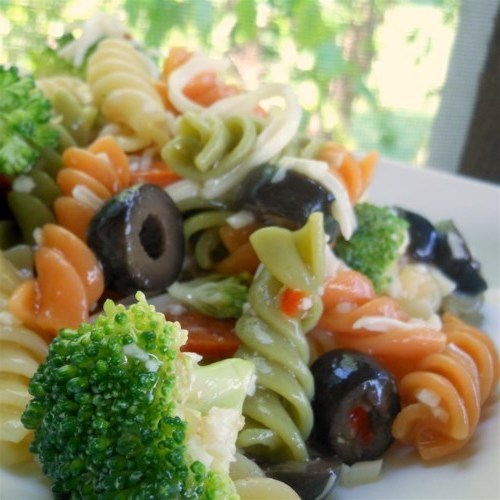 Een geweldige pastasalade met Italiaanse smaak, broccoli, peperoni en kaas.