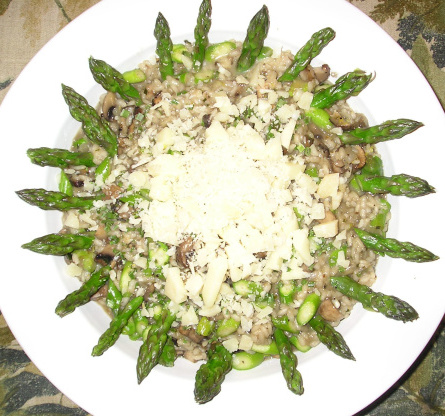 Blijf koken totdat de rijst al dente is en de asperge heldergroen is en zacht, ongeveer 4 minuten langer.