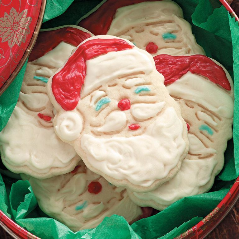 De kerstman blijkt een aardige kerel te zijn als ik mijn favoriete knipsel-koekjesrecept gebruik. Het schilderen op de snoeplaag maakt een gedetailleerde decoratie mogelijk. Mijn 14 schoenendozen met vormsnijders vertellen je hoe graag ik koekjes maak! -Jane Brown, Greensburg, Indiana