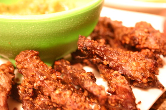 Combineer geroosterde zaden en noten met de olie, ui, gember, knoflook, tamari en sojasausen, suiker en azijn. Spreid dit mengsel over het vlees en laat het 8 uur marineren (langer en het vlees zal slap worden).