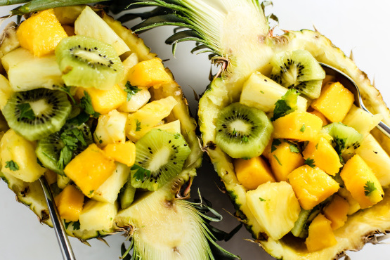 Salade van mango, ananas en kiwi