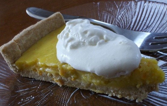 Een mooie, pittige citroentaart. Ik vind ze heerlijk met een grote klodder dikke, dikke crème. Spreidtijd omvat het blind bakken van het deeg, of je kunt een kant-en-klare pastei kopen.