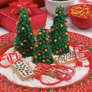 In de winkel gekochte glazuur wordt gebruikt om mini-snoepriet "lopers" te hechten aan de graham-crackersleeën. Voor feestelijke afwerkingen zijn de frosted sleeën versierd met gekleurde hagelslag en zijn ze verbonden met rode shoestring-drop "touwen" .- Taste of Home Test Kitchen, Greendale, Wisconsin