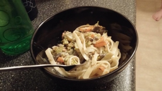 Maak en deel dit Slow Cooker Vegetable Fettuccine Alfredo recept uit.