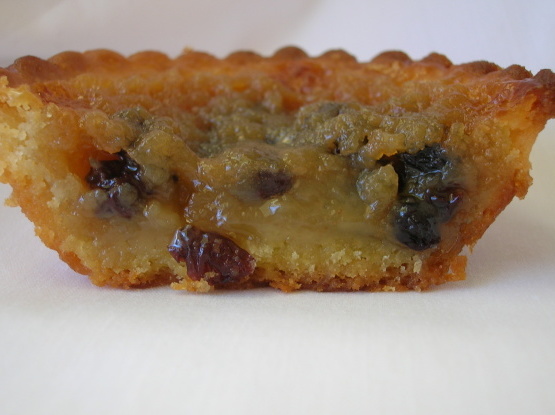 (Als centimetaartaartjes worden gebruikt, gebruik dan ongeveer 0,5 theelepels krenten en 2 tot 3 theelepels vulling per taart).