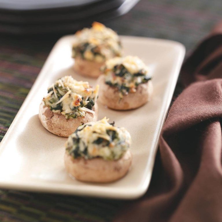 Sierlijke hapjes zoals deze paddenstoelen zijn een leuke manier om gasten bij je thuis te verwelkomen. Een stevige spinazie-vulling zal mensen overgeven tot de maaltijd wordt geserveerd. - Sandy Herman, Marietta, Georgia
