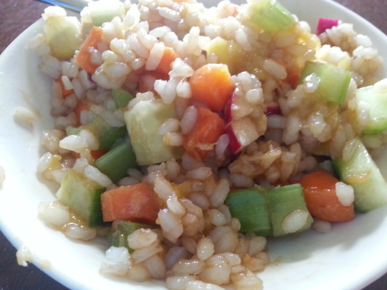 Roer de groenten door de afgekoelde rijst.