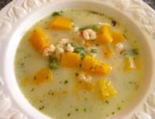 45 minKokosnootolie-, ui, garnalen pasta, pepers, pepers, garnalen pasta, water, pompoen in, kokosmelk, zout, citroensap, koriander, basilicum,Thaise kokosnoot pompoensoep
