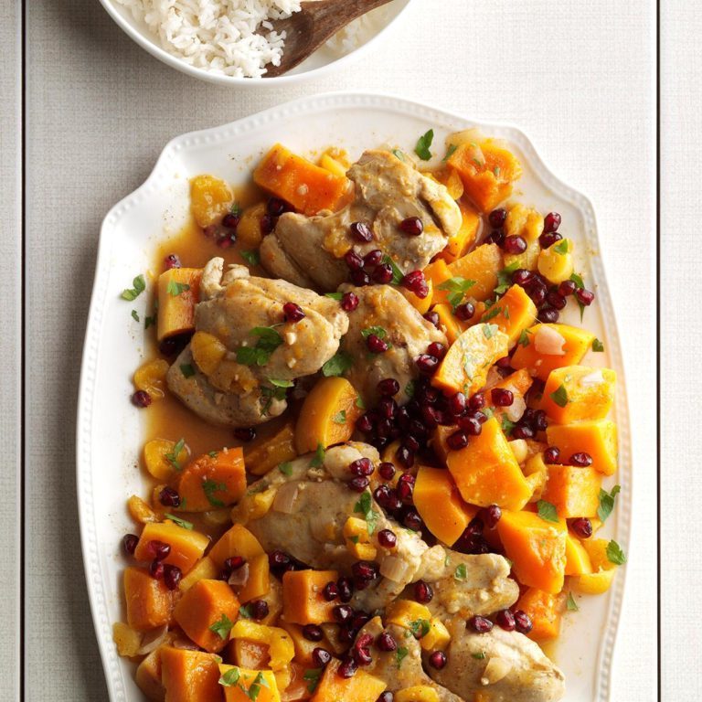 Als we familiebijeenkomsten houden, geven we de slowcooker keukenplichten. Deze lekkere kip met pompoen en abrikozen heeft de warme smaken van Marokko. - Nancy Heishman, Las Vegas, Nevada