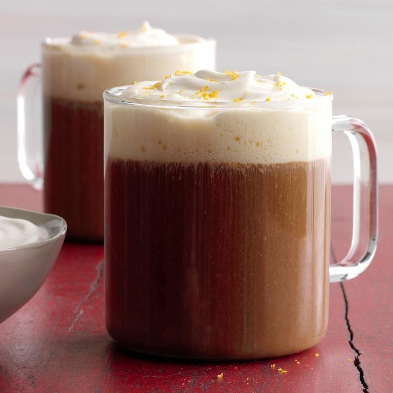 Giet in mokken; indien gewenst, garneren met slagroom, kaneelstokjes en sinaasappelschil.