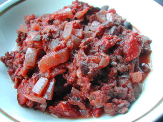 Dit is een perfecte starter, of het nu gaat om een etentje of om meer informeel buiten de deur eten. Het idee kwam uit het 'Sarah Cook's Vegetarian Cookbook', maar ik vereenvoudigde het met ingeblikte ingrediënten en veranderde de smaak. Het werkte zo goed dat ik heeft nooit het originele recept gemaakt! De textuur is meer een dikke salsa dan een traditionele paté en is goed geserveerd met crackers, roggebrood, blini's en zure room. Deze paté is rijk, dus een beetje gaat ver. Sarah Brown is een Britse schrijver en presenteerde een programma genaamd "Vegetarian Kitchen" voor de BBC.