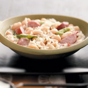 "Mijn man houdt van worst, dus ik vind manieren om het te serveren met gezonde ingrediënten, zoals bonen en spinazie." Dit hartige recept laat je smaakpapillen smeken om meer.Kelly Young - Cocoa, Florida