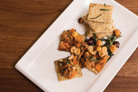 Gebruik eenvoudige ingrediënten om te werken met deze heerlijke recepten met zoete aardappel, afgebrokkelde chorizo en gekraakte peper en olijfoliecrackers.