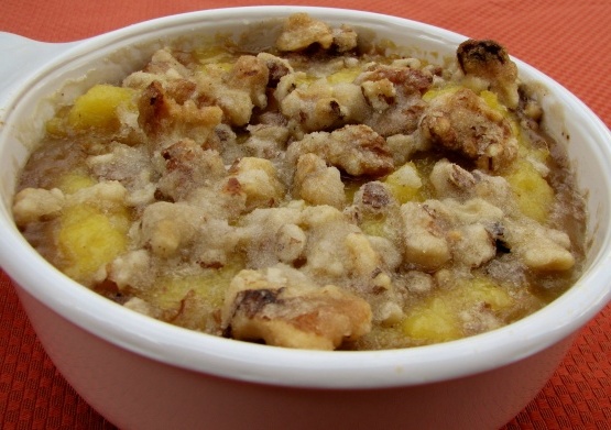 Combineer de suiker, de boter en de walnoten. Strooi over het aardappelmengsel.